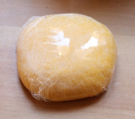 Dust with a wisp of flour as needed and fold dough to fold in the flour; you do not want any surface folds or cracks as you see in the dough, above. Knead the almost finished dough gently until glossy, smooth as a baby’s bottom, and not at all sticky on the surface, as below. Wrap in plastic wrap, and rest dough for thirty minutes: tick-tock-tick-tock…