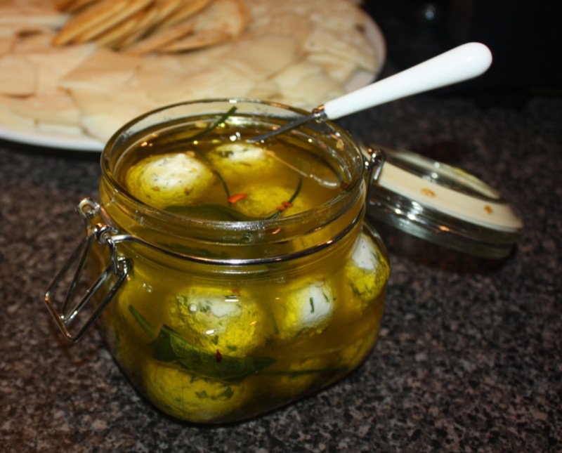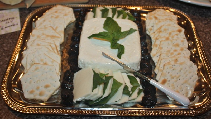 Different people come to every tasting, so I make and haul out my old favourites: My yogurt cheese balls, and this time, a Mini Cabécou made with the small individual moulds from Glenngary. I also showcased Ian’s marinated recipe with my goat chèvre . There aren’t any photos, but I also had cow chèvre and goat chèvre for tasting. The sheep chèvre was still hanging on the sink faucet and didn’t get finished in time for the party!