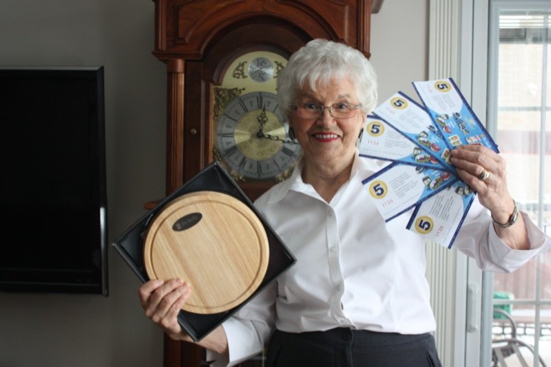 And our youngest Cheesepalooza Participant drew all of the names for each draw. So much fun! My mom is modelling her win of the Tre Stelle prize the following day. No, it was not fixed!