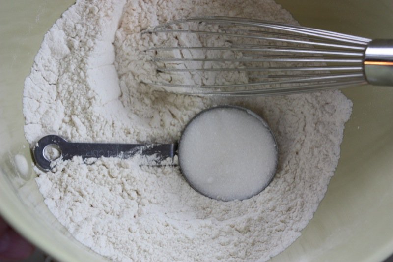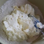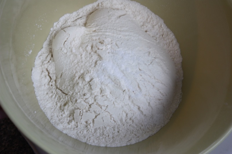 - Add flour mixture and stir with a wooden spoon, then use a flat spatula on the counter top, folding the dough gently onto itself until it forms or sticks into a ball