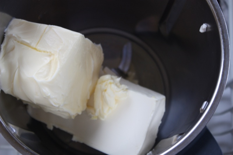 - Beat together butter and cream cheese in a large bowl with an electric mixer until combined well