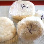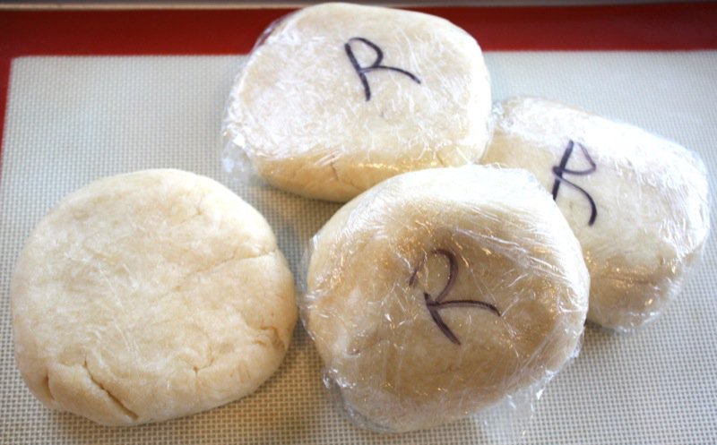 - Gather dough into a ball, cut into 4 portions (about 180g each) and wrap in plastic wrap