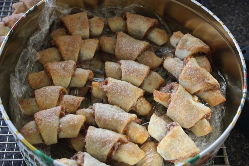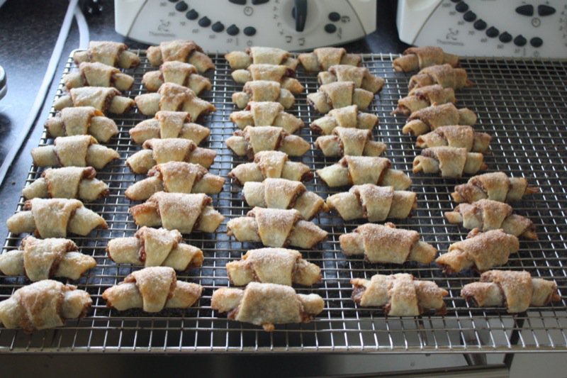 These are wonderful with a chocolate filling, or a filling with dried apricots and walnuts.My mom used to make these for my kids as they were their favorite-you will see them at every Jewish party.Happy Holidays
