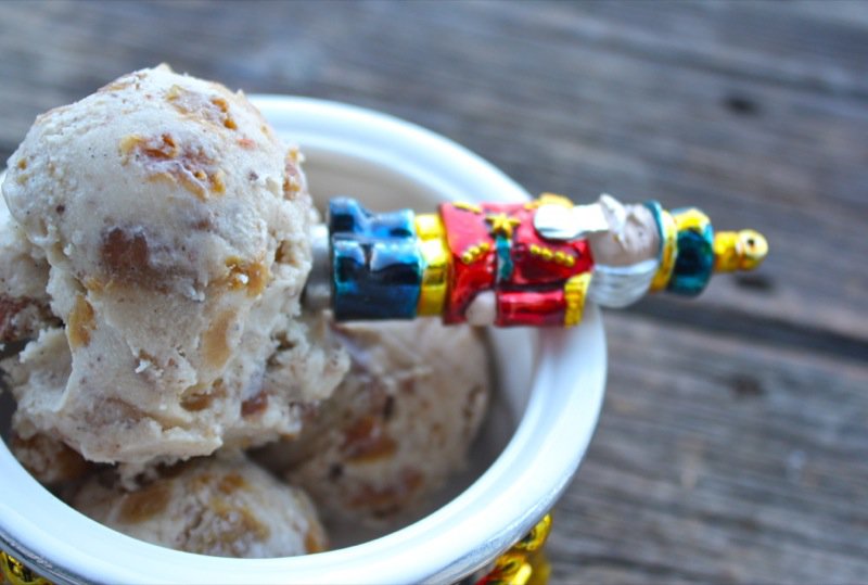Homemade mincemeat ice cream is dreamy with steamy Mincemeat Tarts, above, and decadent with Sticky Toffee Pudding, below. The generous addition of Calvados makes it a great little treat straight up, as well! Mini-cone, please! Yes, even in the dead of the icy blue Canadian Winter at Christmas.