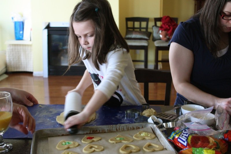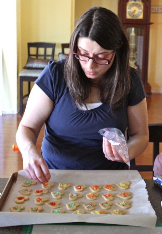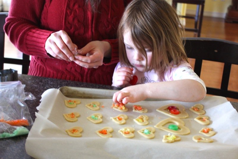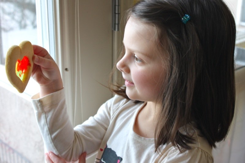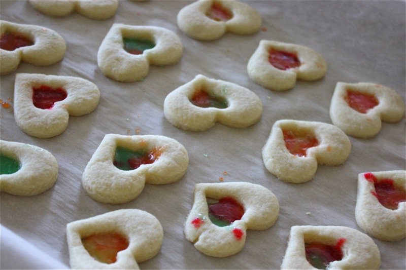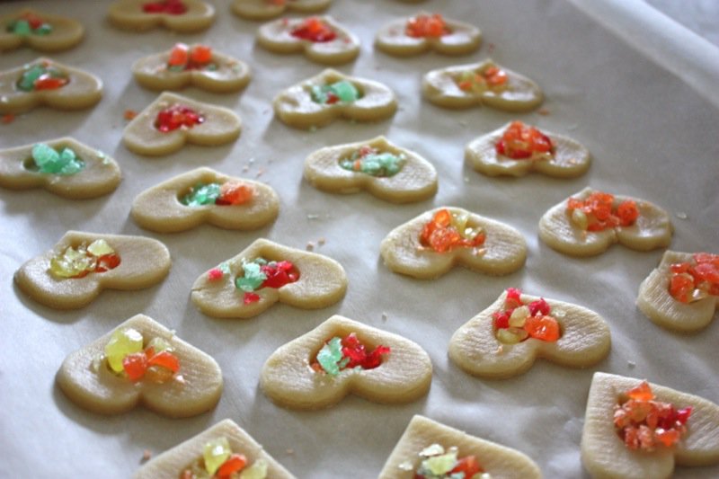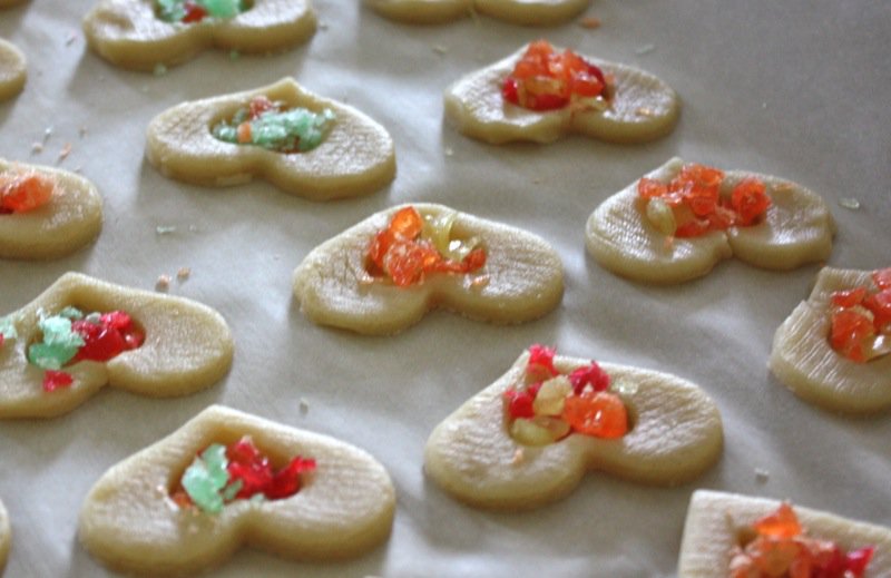 These children are much younger and also such fun! We made Gingerbread Cookies in 2012 and Candy Cane Cookies in 2011, but missed the stained glass Christmas of 2o12! Instead, we just finished making gorgeous heart shaped cookies together.This is a great family activity and these cookies make terrific gifts for any special holiday. Enjoy the photo essay. Recipe to follow.