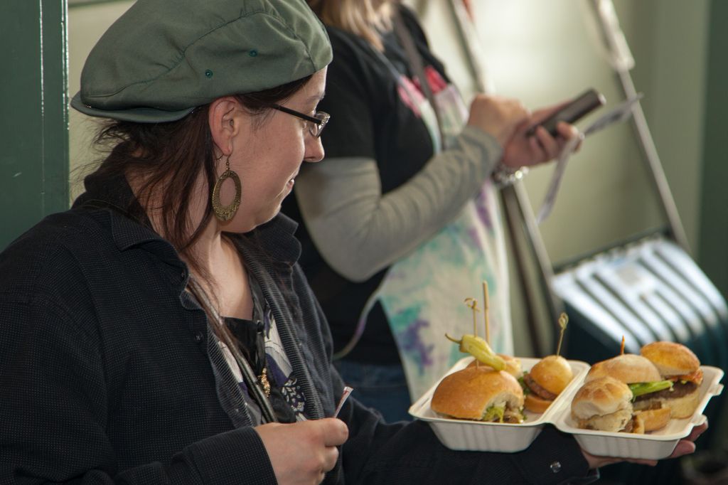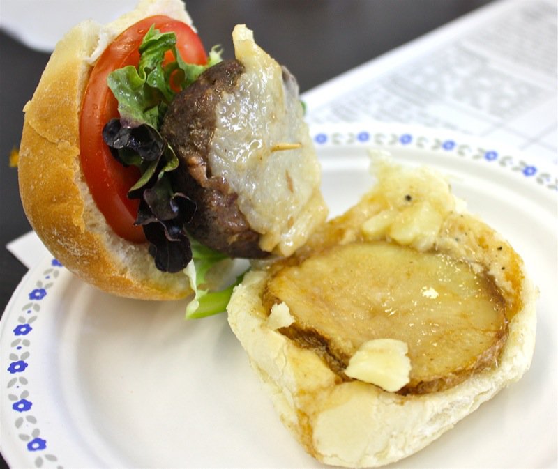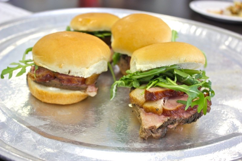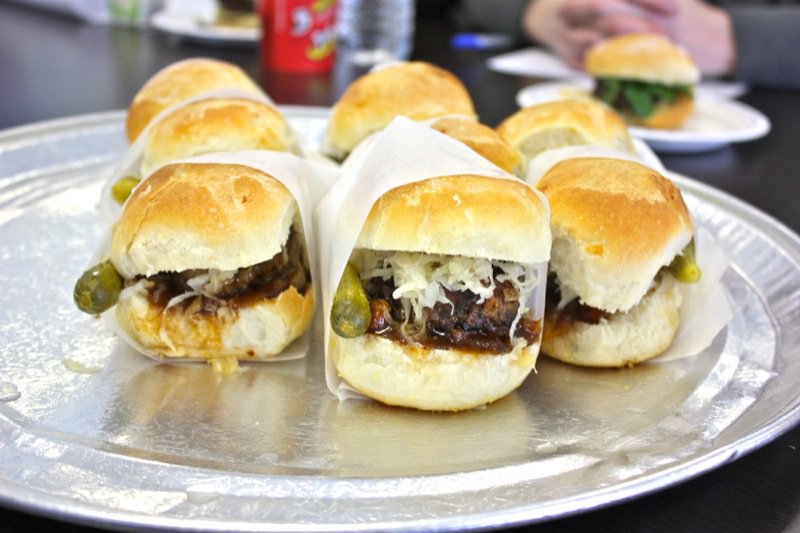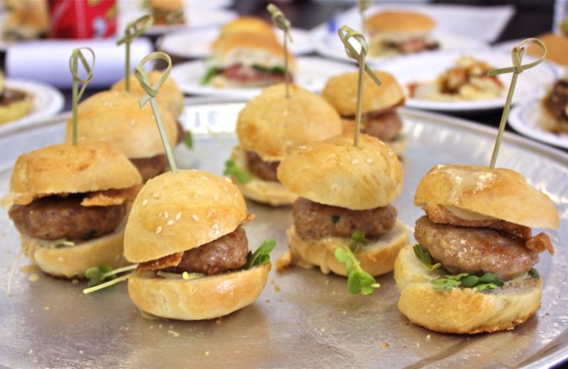 We, the judges, munched our way through beefy bundles of mini-burger madness. Pork and salmon joined the party with mixin’s and fixin’s that tickled the tongue and had each of us in the judging room kickin’ up our heals and squeelin’ “yee-haw” every time we bit into another juicy slider saddled in a yeasty realm of sorts. Feast on each of the eight sliders we also met with our eyes first. We sniffed, nibbled, chomped and crunched lip smackin’ and finger lickin’ through the entire line-up. Napkin after napkin. Note upon note. Yums and hummms accompanied a chorus of guttural utterances at the onset of each debut. A glance around the room, yet our palates were not united. Articulating one’s evaluation of every concoction honoured the passion worked into each.