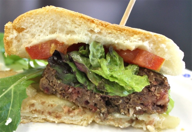 Cafe Slect wanted to keep it classic: bacon, cheese and lettuce on a house made bun. Classic it was. Raw onion was missing for my palate. The generous hit of melting cheese and crisp bacon with the moist burger brought me back home. This bite was familiar. I was all tucked into my little happy place with this one, yet there was no “ah-ha” or “whoo-hooing” going on. It was good. Tasty. Classic. The bun held up nicely and everything worked. It was just flat lining.