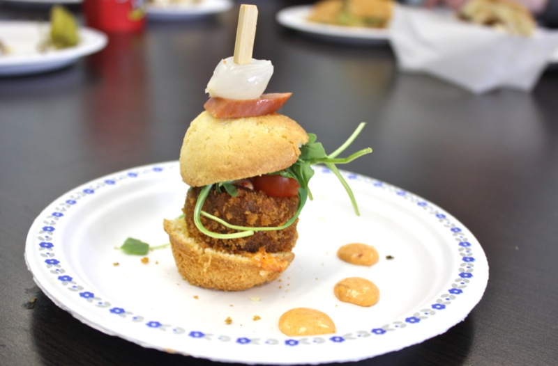 Back to the sliders. Eight Edmonton restaurants that lined the gymnasium wall had generously agreed to participate in The Culinary Arts Cook Off 2013. Each one was serious about their slider. I mean serious. Each slider was built with the most careful consideration: plating, texture, taste, an element of surprise… or an element of pure indulgence.