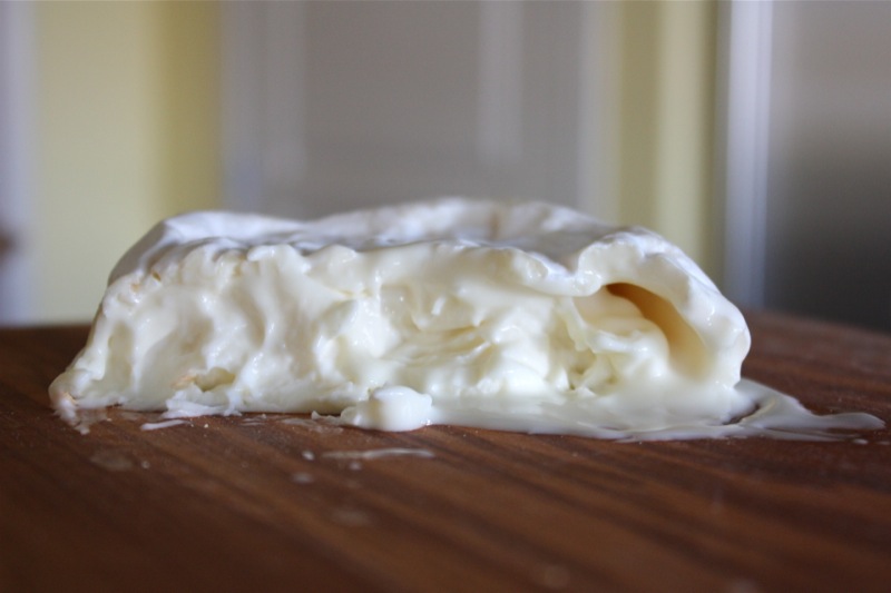 I knew the time was past when I could open the cheese, yet, I hesitated. However, it spoke to me when it was ready. As I turned it over, it just oozed buttery goodness. Time to slice into the brie. I didn’t expect such luxury. The first day, it presented only a wee bitter after-taste once a lush buttery-softness nestled settled over the tongue.