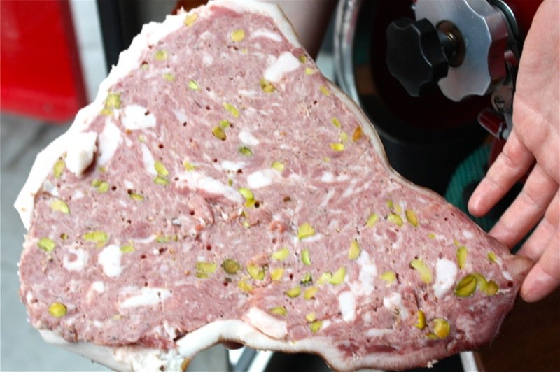 Imported mortadella is nothing like that of Bologna, the mortadella capital. Nothing. Vanja and I feasted on the whisper-thin slices of it there alongside copious arrays of charcuterie a couple of seasons ago. Then we ate Connie’s: hand-made with pistachios, truffles, and only the best of ingredients, cured in a pig head; as you rest it on your tongue, it melts into an unctuous concoction of addictive savoury savvy-ness.