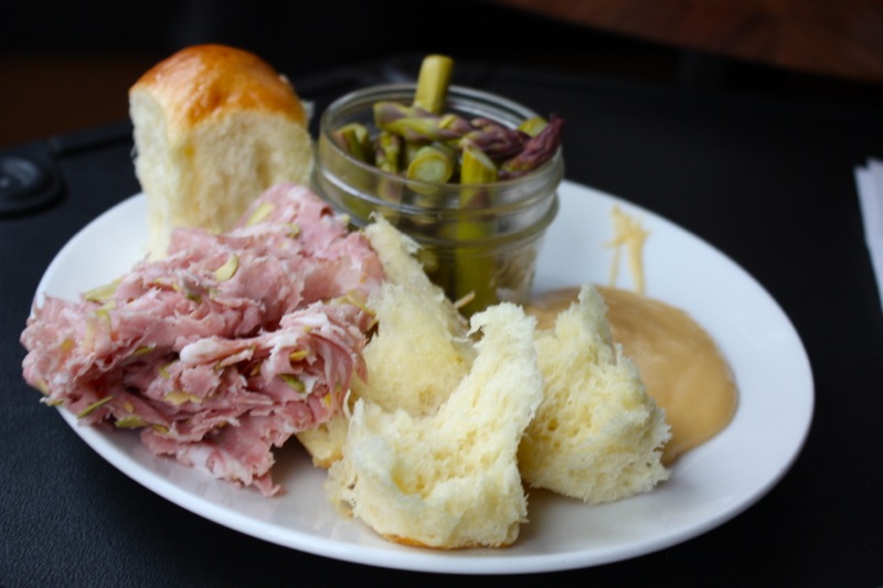 I have had CharCut’s brioche before. It is an unforgettable puff of butter-breath. Tonight, served with freshly pickled Edgar’s Asparagus: lemon thyme, and the best cheese fondu I have ever dunked, dipped and dabbled in. How can a cheese fondu be so rich and cheesy, yet light, at the same time? I found myself going back for more too many times trying to figure out how they mastered that combination. And with the crisp delicate lemon thyme pickles? Divine bliss.