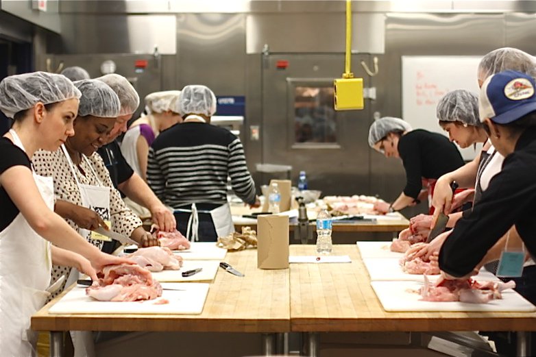 I heard excitement rise from murmur to a whispered mantra: Nevin, Nevin! I admit, this young man exudes as much warmth and charm as his food. Apparently, having Nevin teach how to butcher a chicken was a crowd pleaser! He and his wife, Kara, own Drift, Edmonton’s food truck with the largest cult following in the city. His class on chicken butchery was a huge hit. For many, this was the first time they had ever cut up a chicken.