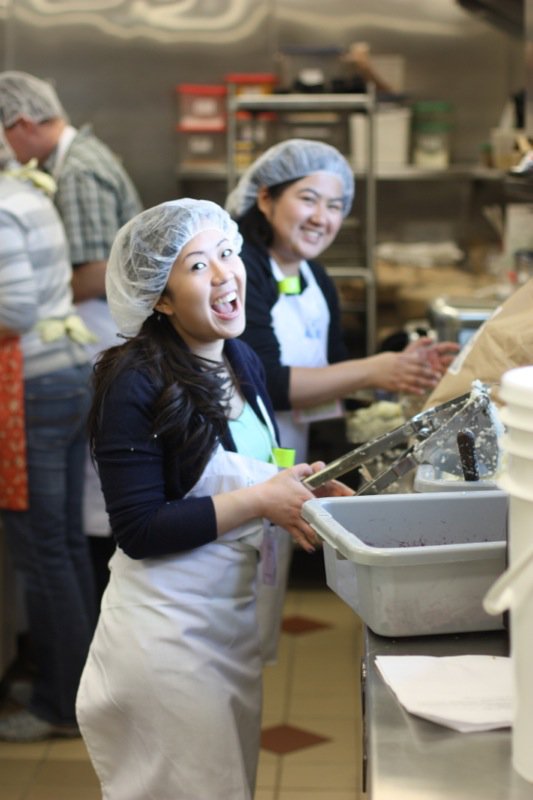 Chef Alan Roote taught ricotta making this year. His mozzarella making class at Eat Alberta 2012 changed my life. I couldn’t take it as an organizer, but after Deb attended his session last year, she taught me. Shortly thereafter, Cheesepalooza was born. Look at the cheesy smiles here? Who doesn’t love making cheese? Once again, magic in this kitchen. Over and over, I heard, “I had no idea that it was this easy to make ricotta.” and “I have never tasted ricotta this good in my life!”.