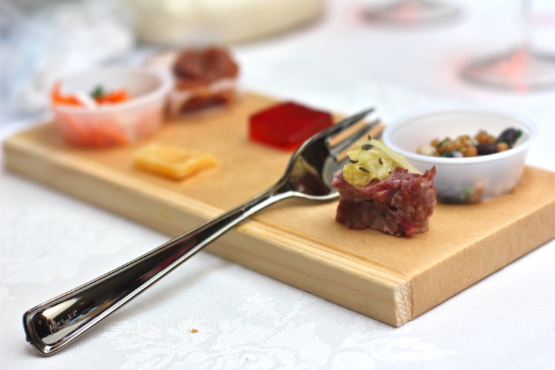 Chef Cindy Lazarenko presented a red meat blind tasting: Bison, Beer and Elk. There was a roast and a ground meat tasting of each. Oooooh, my. Chef Allan Suddaby had prepared the whole meat roasts for her in advance in the SousVide fashion. Even Cindy was in awe of the texture and flavour of each of these meats. She had prepared the three ground meats into meatballs. These were equally as informative to the palate. The texture and flavours of each were unexpected. I head how worthwhile this tasting was for many. I am a tasting fanatic. There is nothing like a side by side taste comparison to teach one about flavour, texture, quality and one’s own personal palate. Neil Herbst from Alle 2y Kat led the beer tasting, but I didn’t get a shot of him.