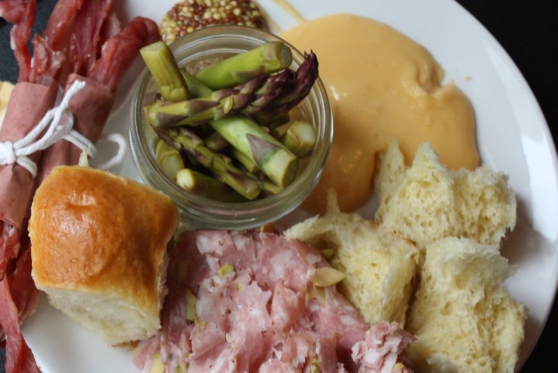 Spring and Asparagus are synonymous. Last week at CharCut in Calgary, Connie had prepared this crisp delicate pickle with a light, yet very cheesy sauce. I was hooked. “How did you make the pickles, Connie?” and her answer: “Lemon, thyme, garlic, salt and water. Made them about five hours ago.” She went on to explain that once they cool, they are ready-to-eat and that the process creates a crisp bite; I hovered over that dish all evening.