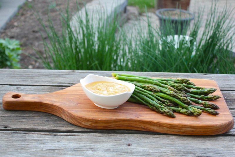 Edgar’s Asparagus is famous in Central Alberta. They sell in Calgary and in Edmonton at the Farmer’s Markets. She got hers from there, and so did I. This is one vegetable that there are line-ups for at the outdoor market. The season is so short and asparagus is such a delicious celebration of Spring. I have written about dancing amongst the end-of-season over-grown fronds at my grandmother’s house as a child. Watching them grow, feasting on them raw, blanched, pickled and puréed, with cheese sauce, heavy cream, hollandaise, grilled, wrapped and just steamed is embedded into my taste memory and an integral and anticipated wonder of Spring.