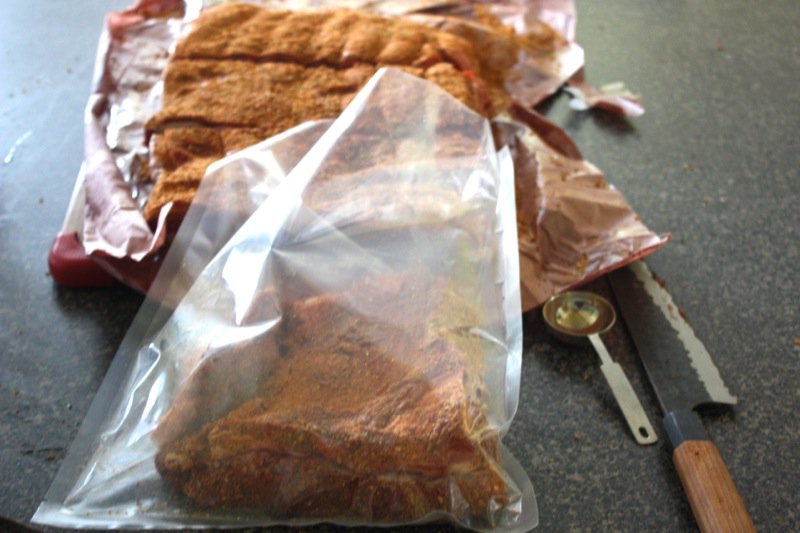 There has not been a man who has eaten my ribs or my brisket that I can keep out of my kitchen. Seriously. My rubs are deadly, but it is the water oven that works its magic with my meat! The ribs I have made get better the more I learn. Cooking the brisket at 130°C for 48 hours was the key to this triumph: and the beef. Grass fed Nouveau Beef from Nature’s Green Acres: slaughtered before 7 months old. Prime Alberta Beef, baby!