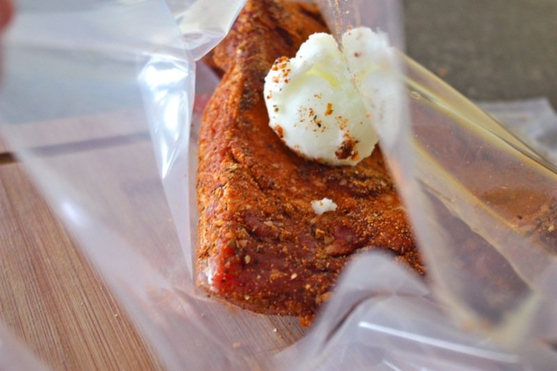 I don’t eat meat; I love it, but can no longer digest it, however, still get excited at this kind of quality. I enjoyed rubbing it all over and had no problem with the rub adhering.