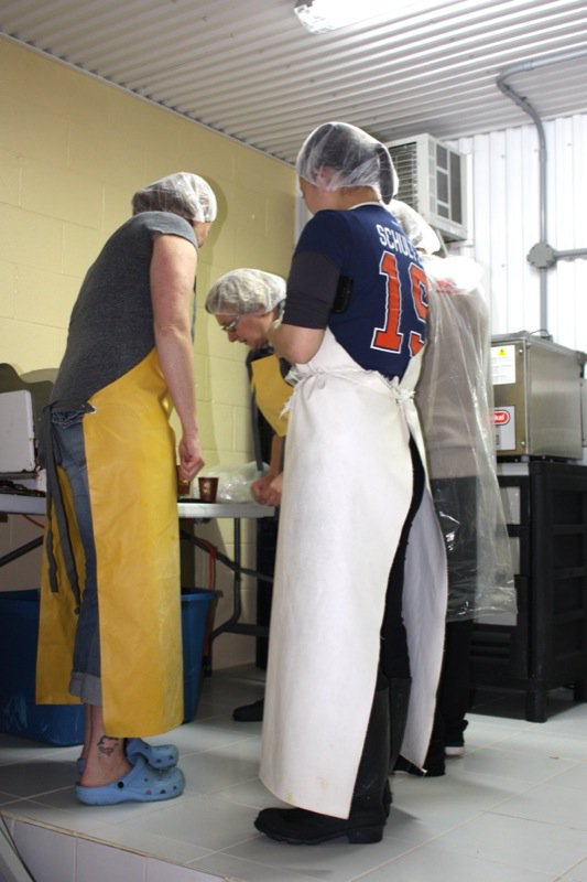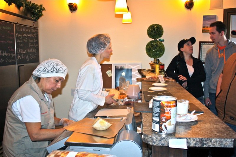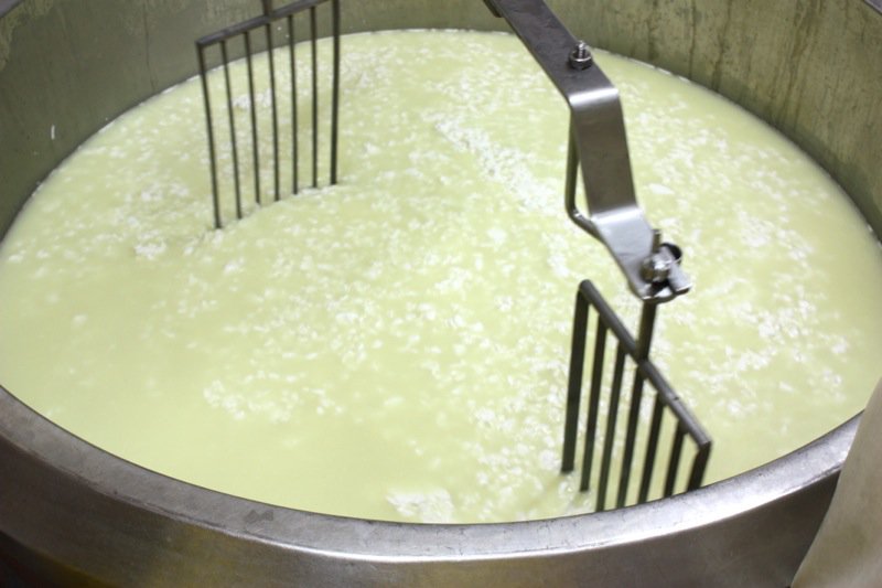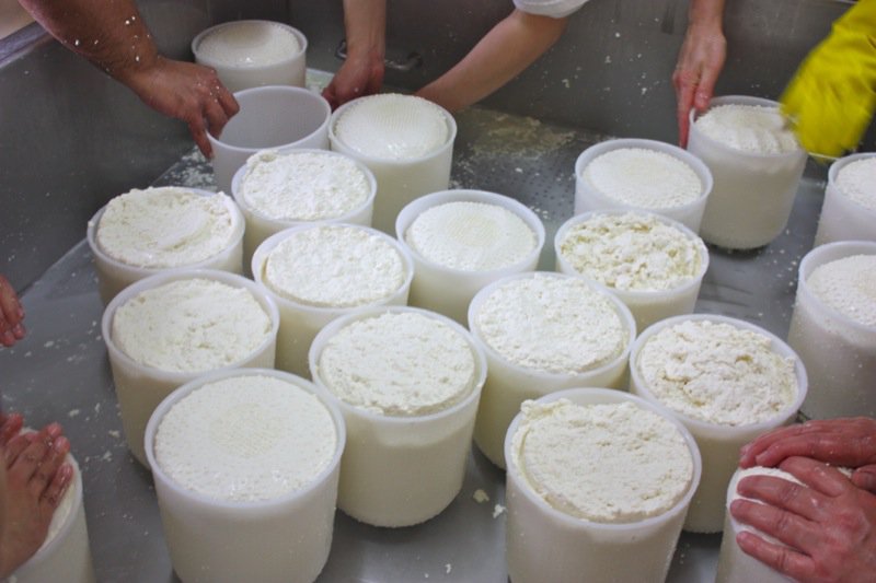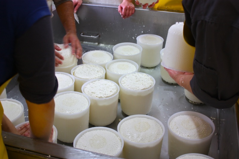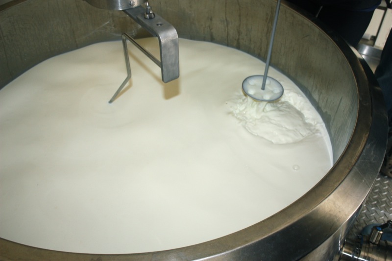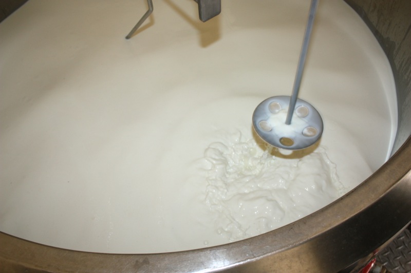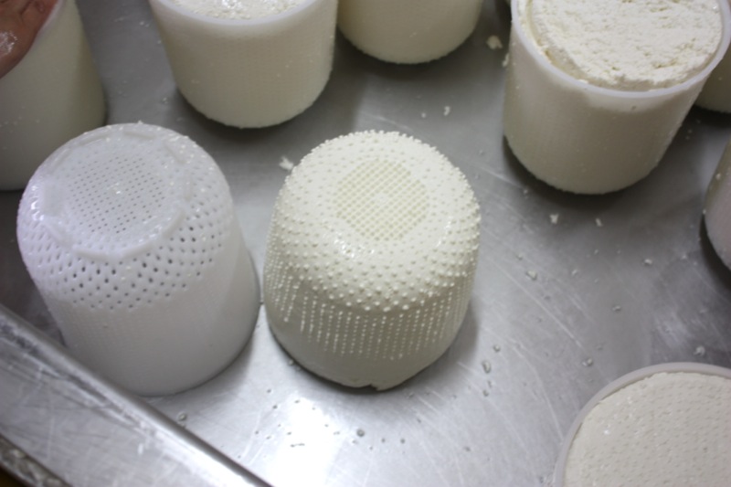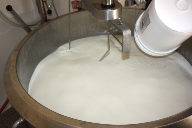 Sour milk. That is the scent that greeted us upon entering the door of the cheese making facility. It was faint, but to weak-kneed me, held me at attention. Rhonda had us change into inside clothing and water proof sanitary footware before crossing the threshold. Once inside, the bright, spacious rooms were spotless, airy and I was wondering if I had imagined the initial sour scent. Hair nets donned, aprons on, we washed up. More times that I can count. And that is a good thing.