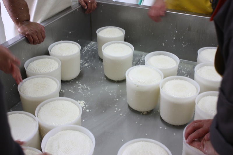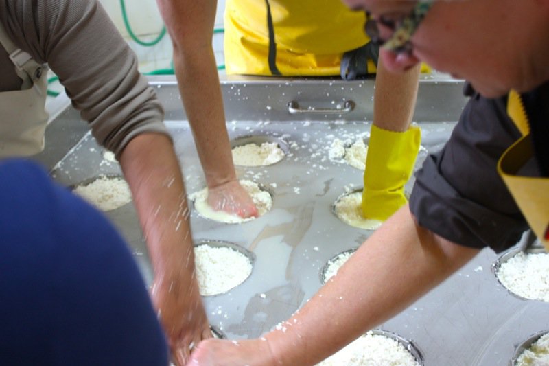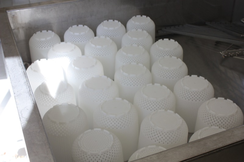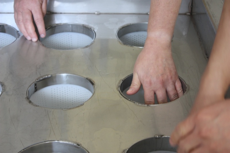 Diana and Cris washed “the dishes”, and Steven took on the top of the mould table. Me? I took the photos! See how the cheese in the moulds are shrinking?