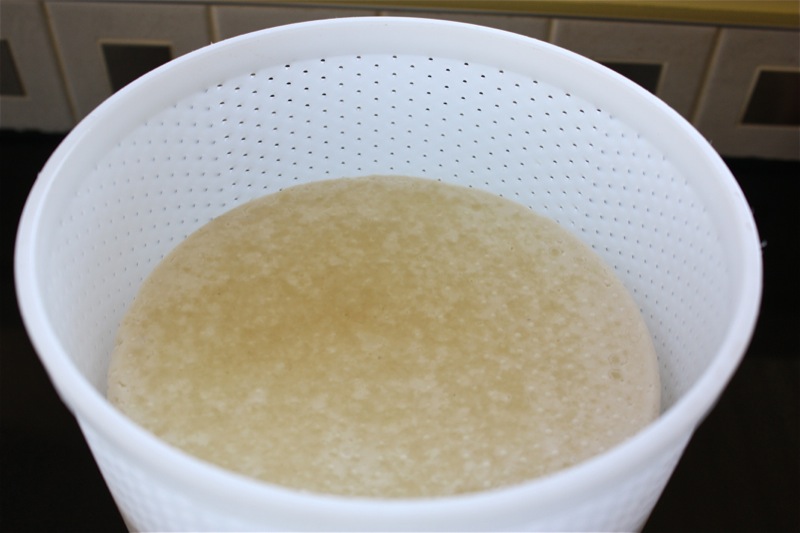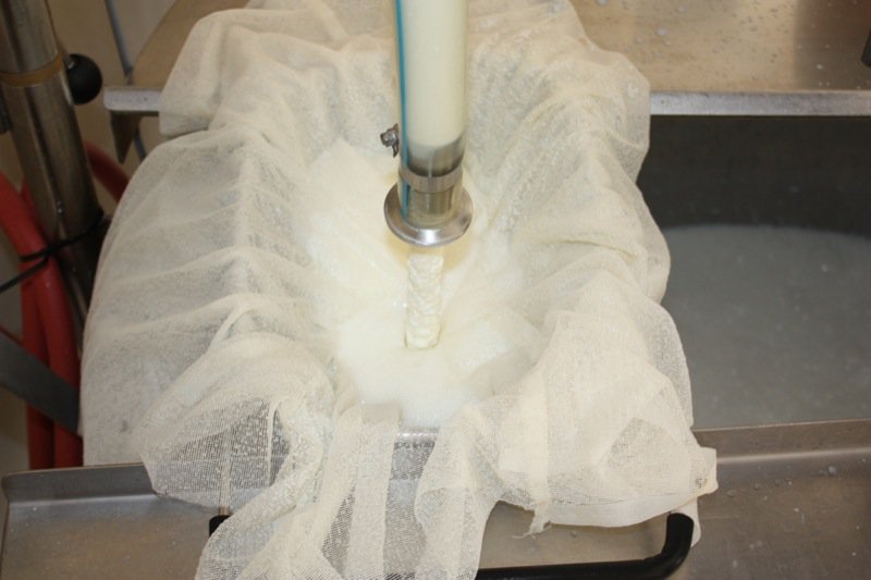 Everything spit and polished: time to set up the vat to bring in the milk. I was curious about the sieve, but Rhonda takes no chances. It was lined with cheesecloth to ensure no impurities found their way into the vat.