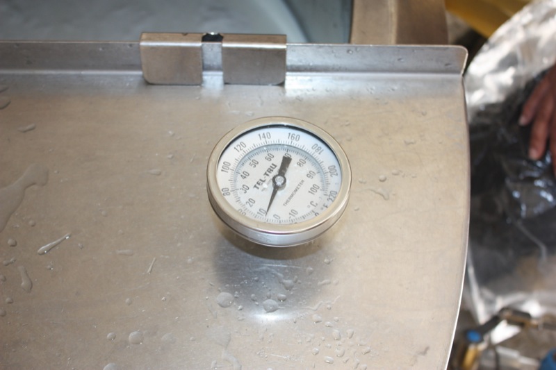 Below, Addie is holding a floating thermometer. Rhonda does not rely on just one. She uses three to ensure that the temperature is where it needs to be.