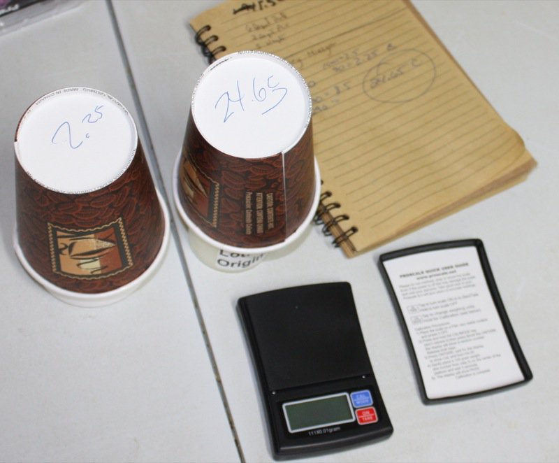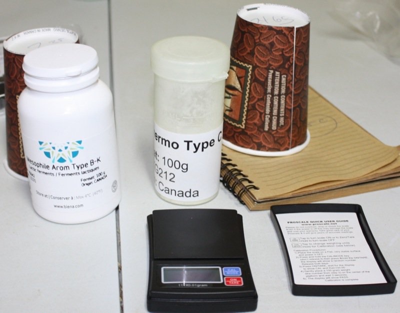 Rhonda uses both Mesophilic Aroma B (2.25 grams) and Thermophylic Type C ( 24.65 grams) cultures in her Pecorino: “the meso culture brings out a buttery flavour, and the thermo, a nutty flavour.” The handy dandy very accurate pricy little gram scale worked like a charm and was purchased at a local cannabis shop.