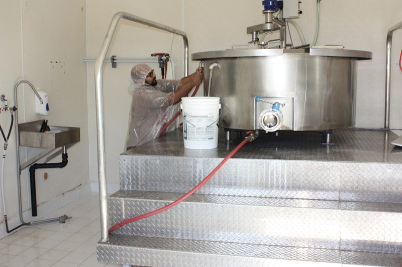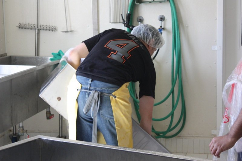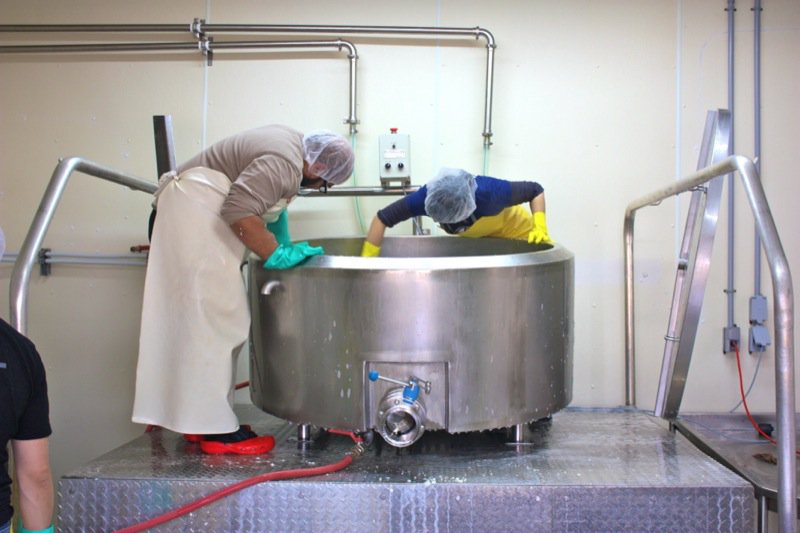 Tour complete, time to prepare for making the cheese. More cleaning.