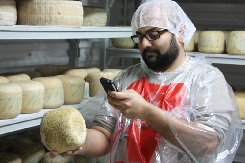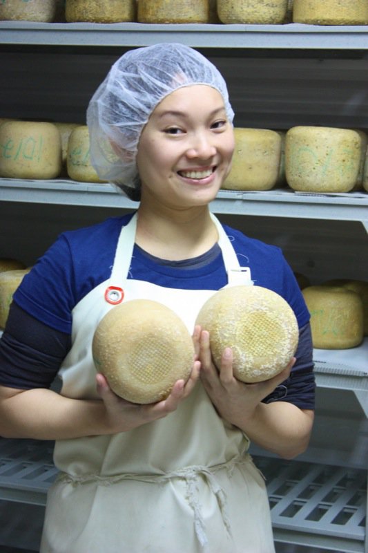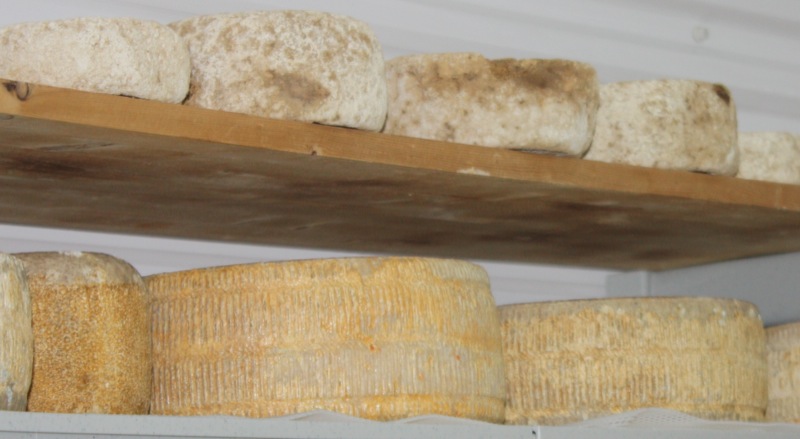 And this, my friends, is the aging room: look at that Pecorino! The oldest ones are at the top and Rhonda just lets them take on a life of their own within the confines of the 12°C temperature controlled, somewhat high humidity environment. Whatever bacteria is in the air has seemed to age these cheeses into the most complex wheels of wonder.