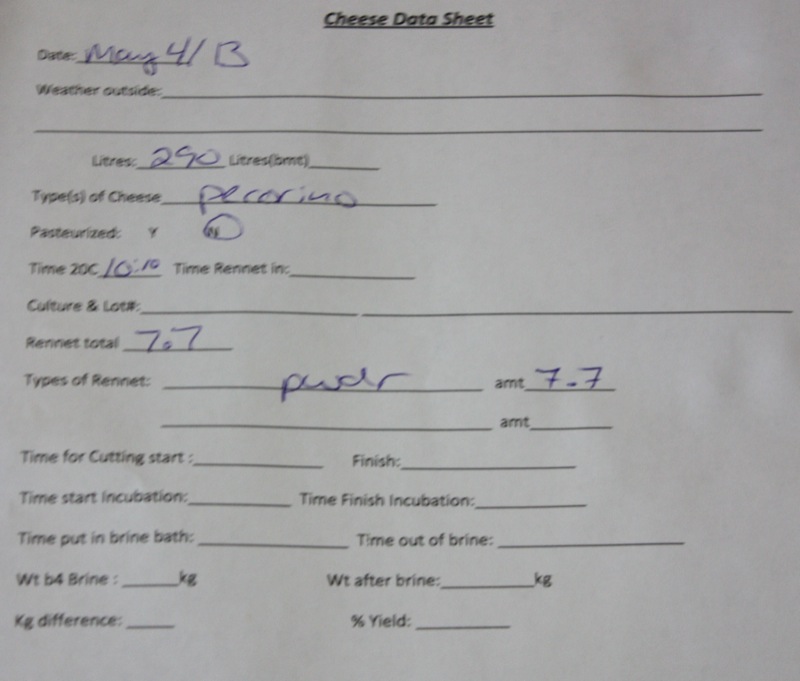 I am sure Rhonda is required to keep these kind of cheese notes, but Ian has taught us how important it is for our own personal reference when making cheese at home, too.