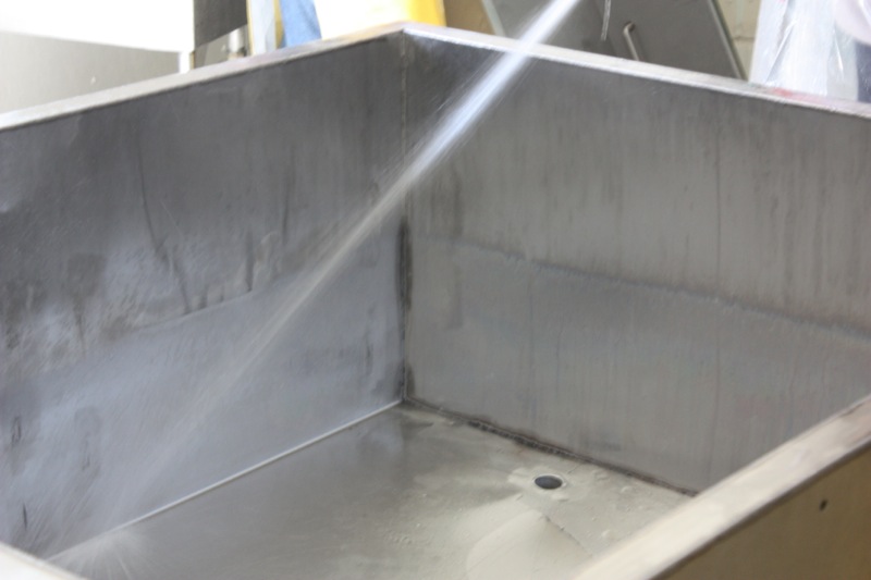 Above, the inside lining is being cleaned, and below, the table is also being washed out well.