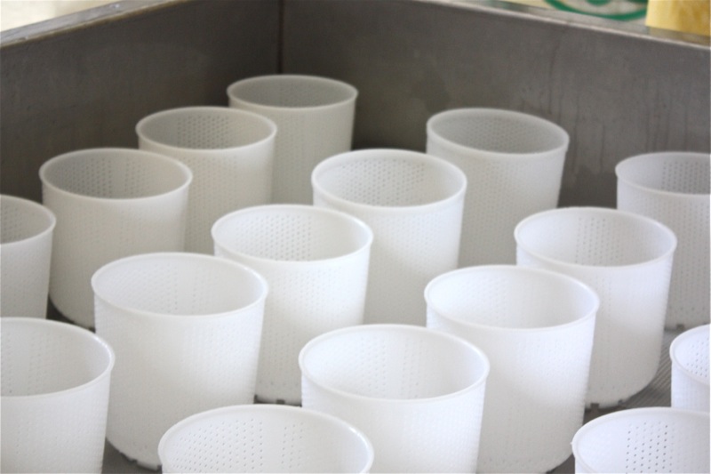 I covet cheese molds. I don’t have either of these. The above moulds make a 1.5 kilo round and 300 litres of milk makes 24 of these.