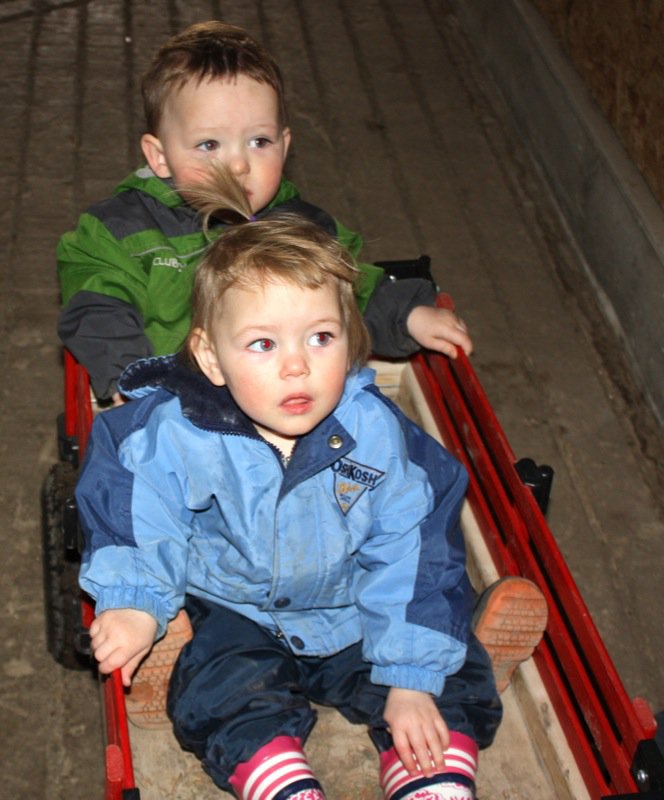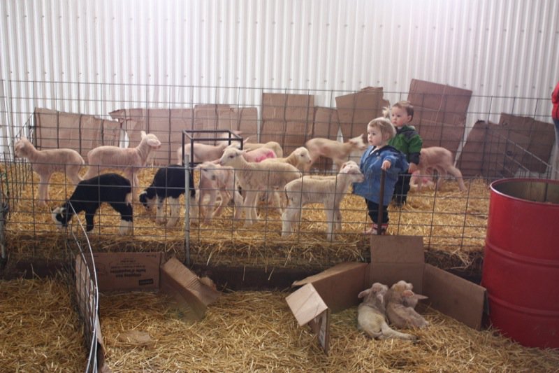 Look who woke up to join us? Twinsies! They love to visit the lambs every day after naptime.
