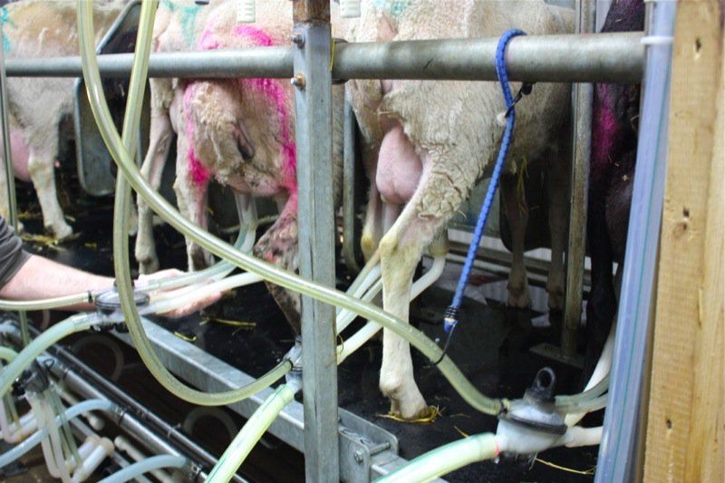 Gathered back in the little shop for a bahtte. Tasting the sheep milk, I was bowled over! The milk was thin, almost the consistency of a Skim milk, yet a dense white colour, and the flavour was mild, sweet and there was nothing “gamey” about it. I could have drank a litre. That little taste definitely left me wonting. Everyone was oohing and ahing over their bahtte. Suddenly, it was milking time. Off to the parlor we traipsed.