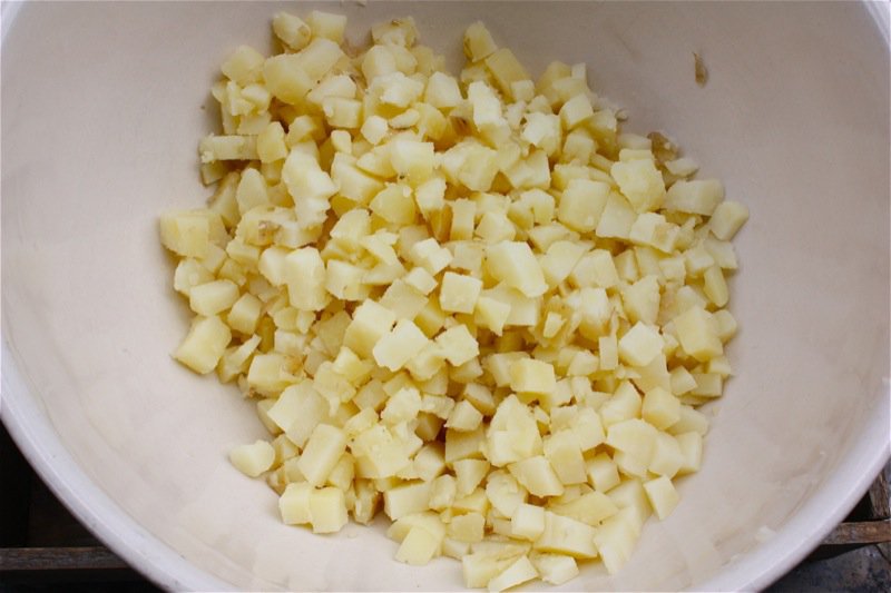 - Dry potatoes; chop into small bite-size cubes