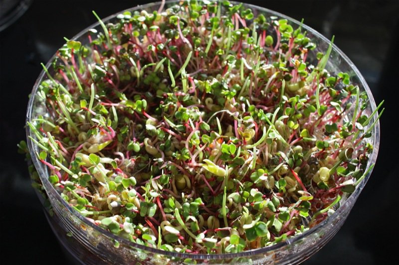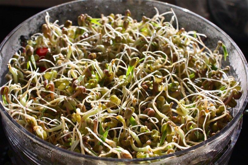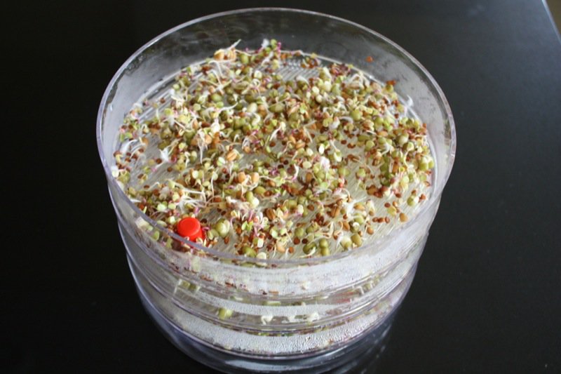 Today, June 20th is day 4, in the morning, so 3 days of sprouting… first is the “mighty mix”, followed by the mung bean and the radish sprouts.