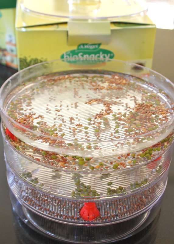 No longer 18. Still an odd duck. Many now know. No longer worry that the world will come to an end or that my family will starve. I do, however, worry about eating healthy and have a considerable food storage. Still make everything I can from scratch. Even my own cheese. And grow as much as possible on my own little urban plot. So, when Food Bloggers of Canada announced the possibility of participating in a sprouting event, I applied. It is an odd season to sprout indoors, but a great season to get excited about it… as everything is sprouting outside. I used to use my sprouter through the Winter. This one is smaller, easier to store and I can see I would easily use it all year long.