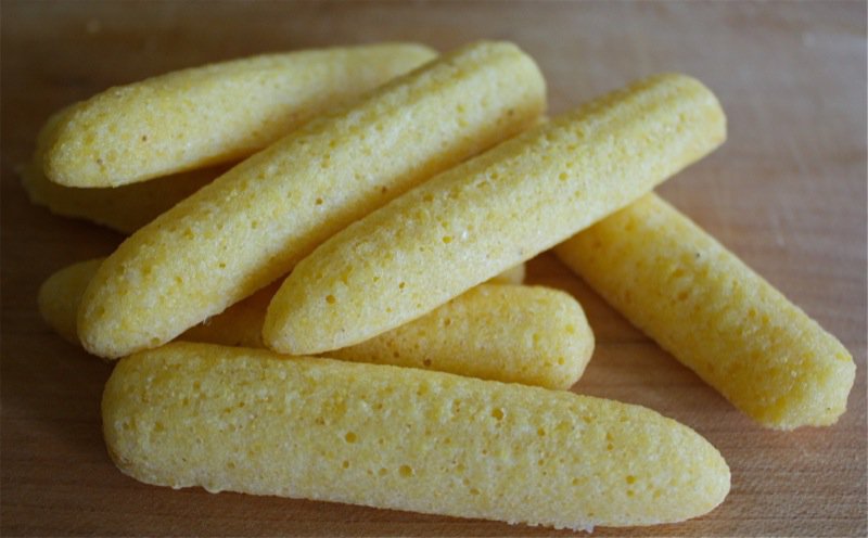 The trick is the 450°F oven and heating the rod iron pans in it before filling them with the batter. They are half cooked before they get back into the oven. I made large ones, too, and they are to be brown and crispy on the outside and tender on the inside. I was afraid to let the little ones get brown on the outside as there was only a teaspoon of batter per cob. However, they would probably be delicious as crunchy cracker type sticks, too.