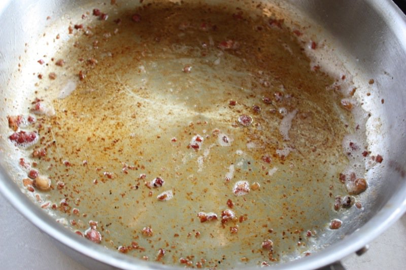 - Fry bacon over medium-high heat until crisp, but not overdone(fat will be rendered); transfer to paper towel-lined plate