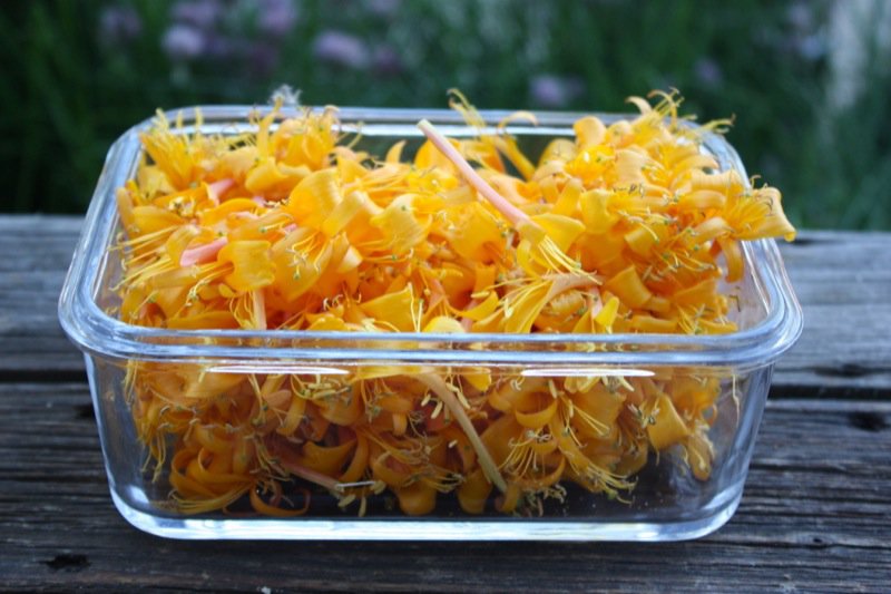 I definitely had enough petals on one of my vines for 4 cups, yet plucked only 2 cups to give a whirl to a half batch.