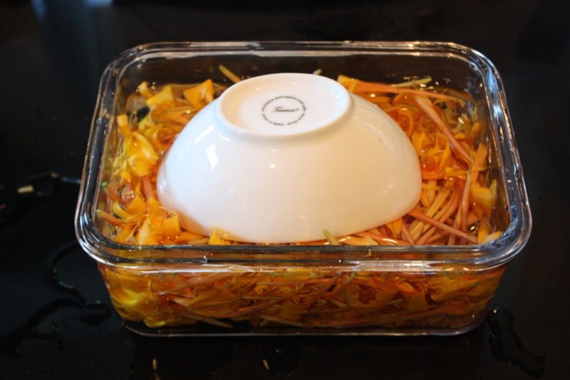 I covered the petals with cool water and tried to weigh them down into the water, and found that a ziplock bag worked the best.