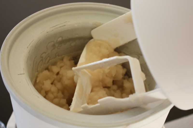 Twenty minutes in the ice cream machine, and the golden hued sorbet was lovely with fluffy frozen crystals.