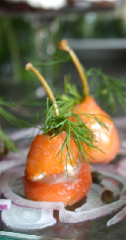 I did take over one appetizer and that is the Smoked Salmon Pears. I had actually planned a couple of more, but had forgotten how finicky these little numbers can be.