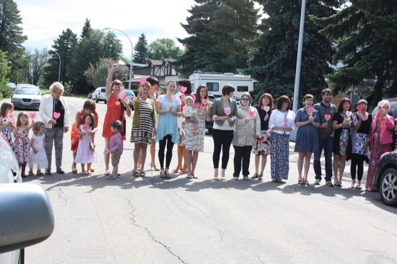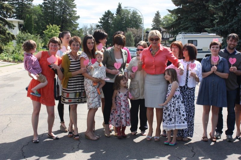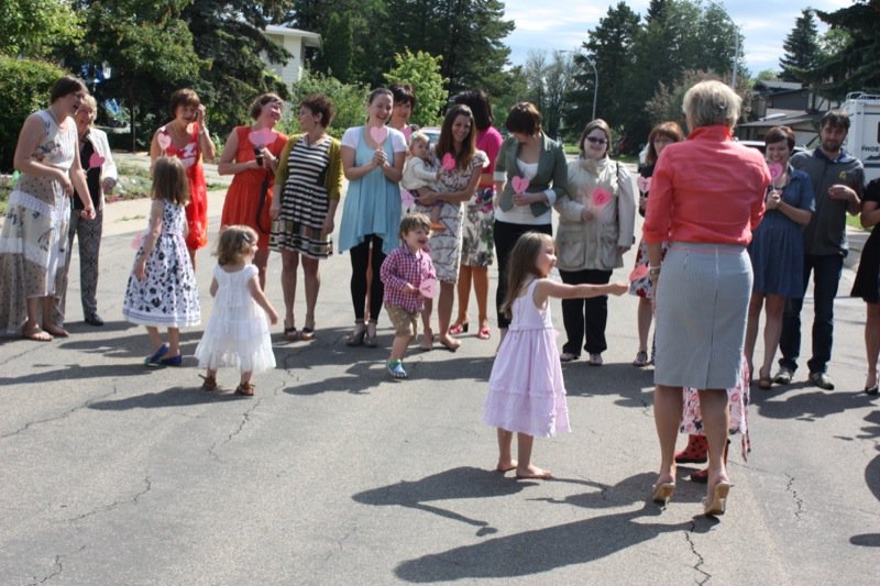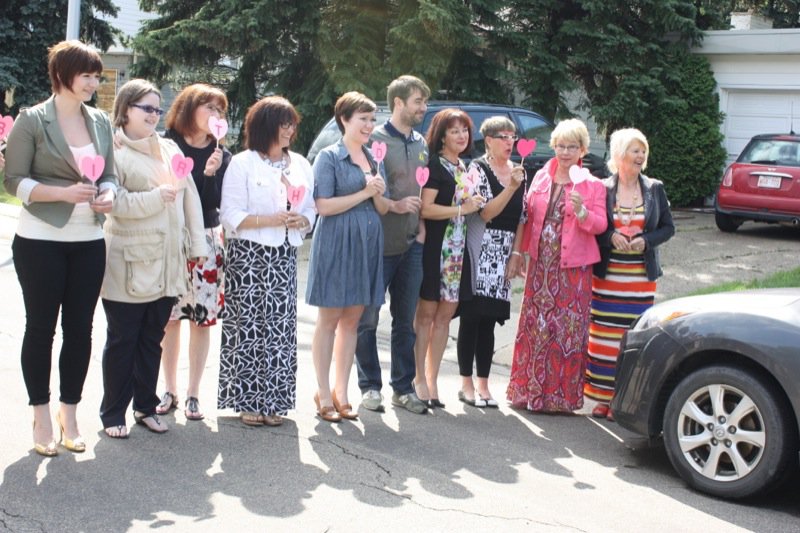 All lined up in the middle of the street with pink heart shaped letters on a stick that aptly spelled: HAPPY BIRTHDAY! from one side to the other. Wiggling with excitement, we waited for her to turn the corner in the car.