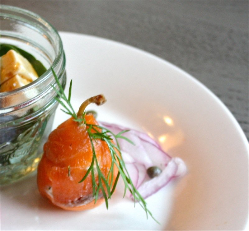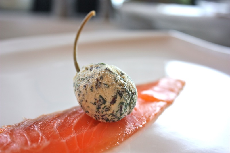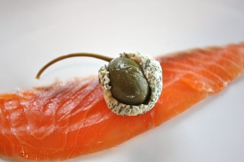 Smoked Salmon Pears: Caperberry, Homemade Boursin and Dill