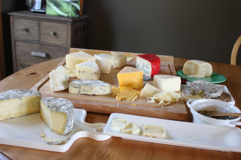 Here is the cheese board all decked out for the Tasting Party! Can you guess which is which? I haven’t identified them all, yet.