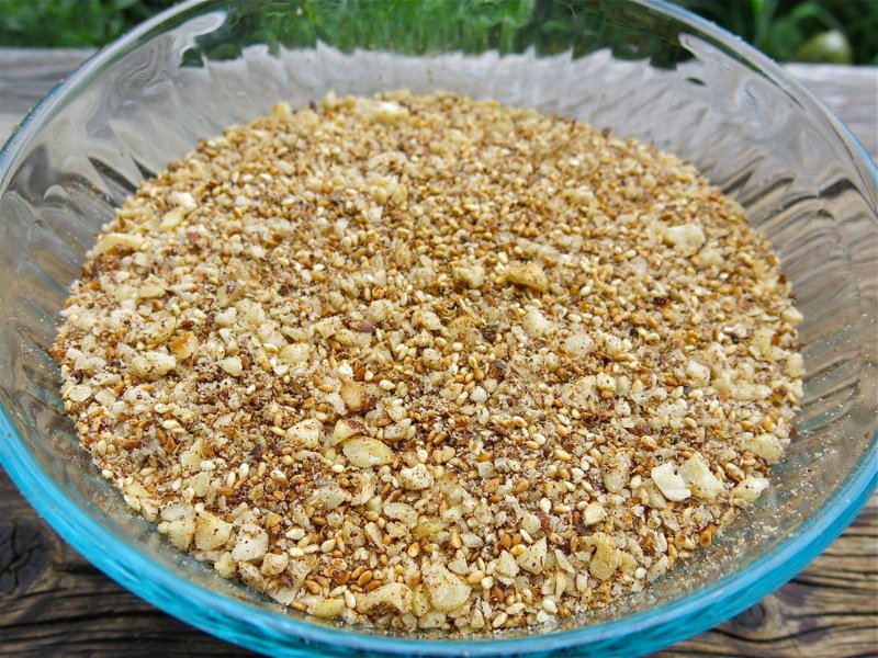 I toasted all of the other seeds and then ran them through the thermomix, as well, Though, dukkah does mean to grind or to pound… so this should be done with a mortar and pestle and probably would have more texture. It was a hot day, and I have a Thermomix. That is my excuse.
