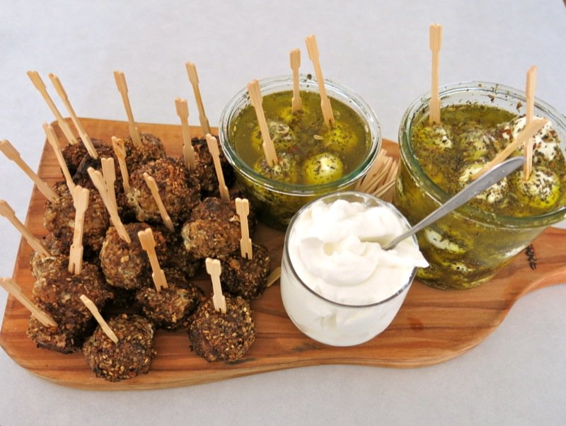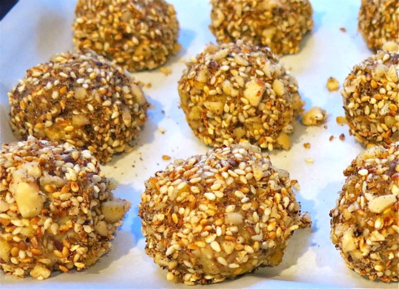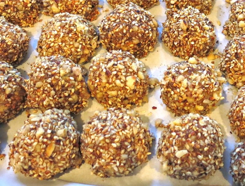 They are often served with a garlicky yogurt dip, but I opted to accompany them with my famous Yogurt Cheese Balls. Good thing, too, as Colleen and Brenna preferred them to the Dukkah Balls. (Just click on the link for the recipe, Colleen!)