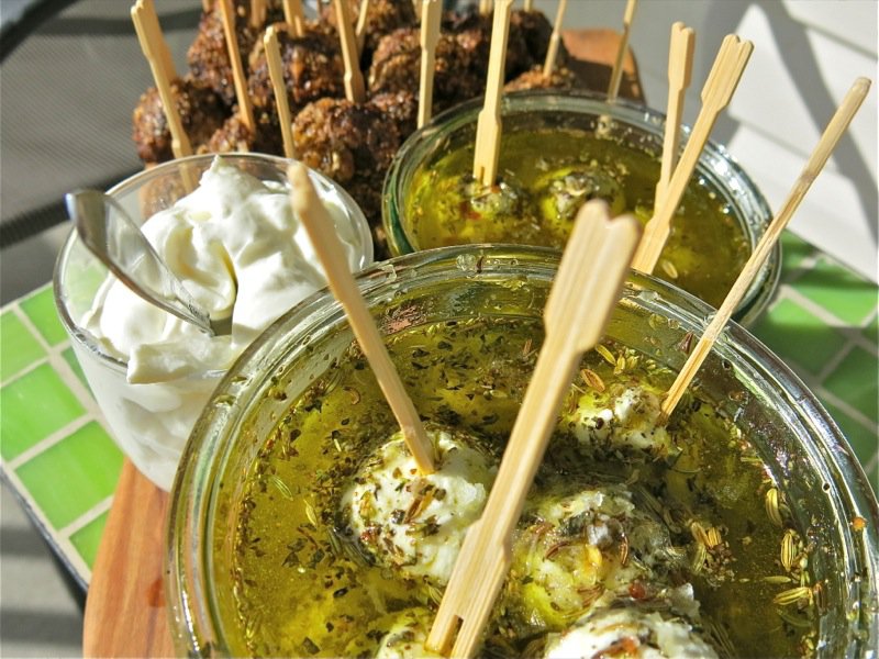 - Serve with sliced tomatoes and avocados in a pita bread, or as an appetizer on a stick with yogurt cheese balls or dipping garlic yogurt