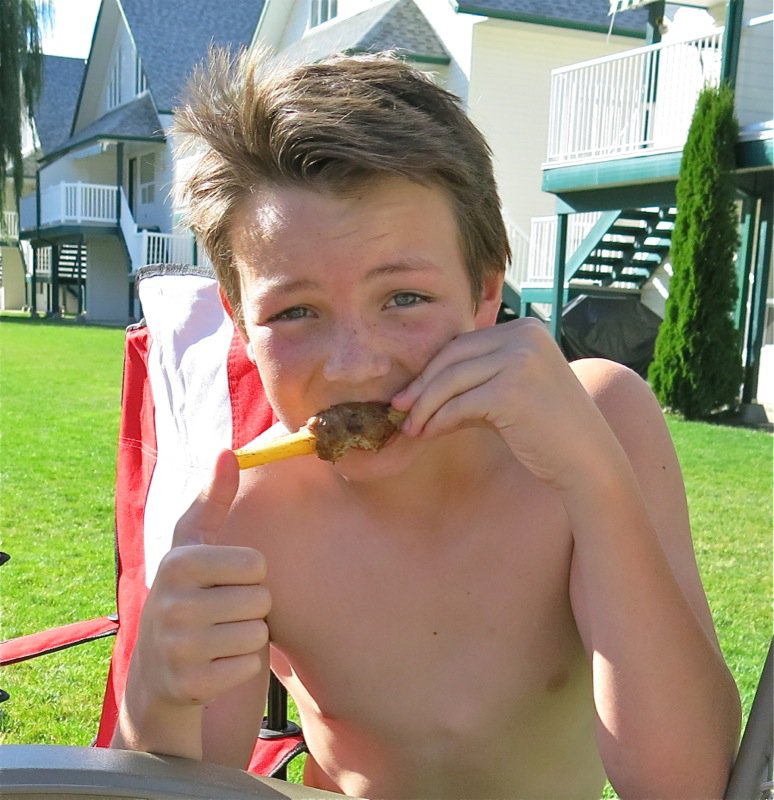 Don’t get me wrong. These were well received, but I have had this recipe many different ways. You can see that Josh was easy to please. I loved how the kids swarmed around the late afternoon bites as tenaciously as the wasps. And the wasps were tenacious this year. I really enjoy feeding hungry kids. I enjoy cooking with them even more. I wonder if Gail and Pats kids remember the cooking class they had with me many years ago when they were “little”.